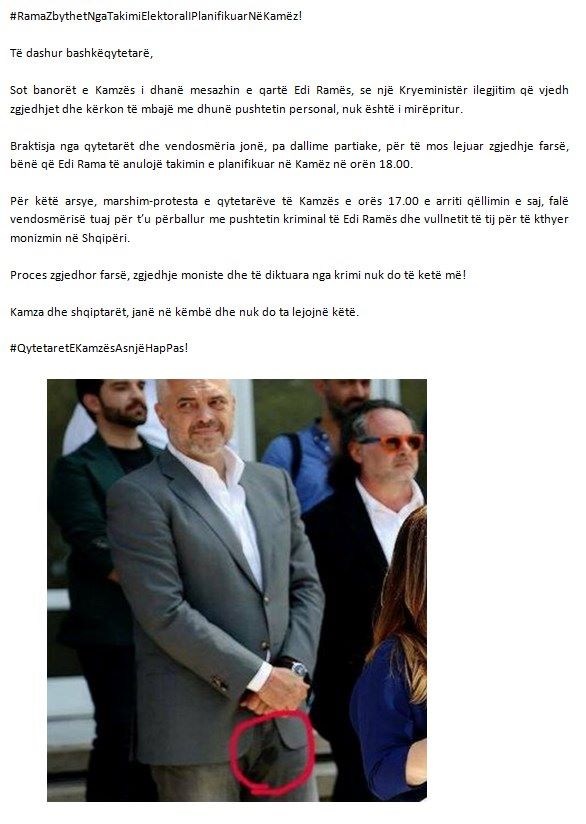 Shyqyr mo qe e mblodhet veten. Ma hiq ene ate Idrizin e Nanos qe therret se i kan vjedh votat kur nxorri 5000 Camok ne Diber, ene ata sdu me e pa. Thuj Kumandarit qe tja coj Edvinit ene Duken Pulaxhiun e Albes, se Klan it te Zenunit, mraps tek Pesi, bashke me Kaqin e Zi…eshte loje dami jo shahu …e Hongerme me detyrim…ene ate Mehdiun e Droges e gerdecit thuj te na e coj tek PeSi se Celibashin e ka kunat … ja pra kshu pastrohet partia…ene ti voton nje dite te bukur per Josephinen apo Patozin.