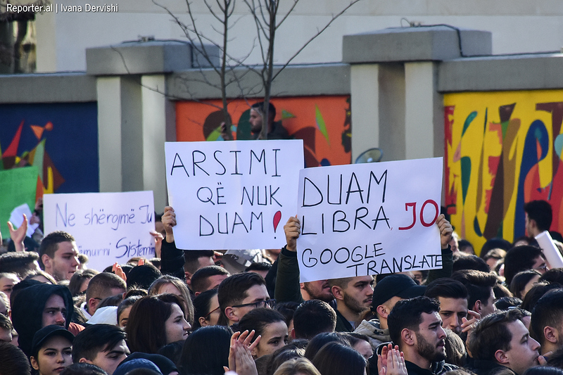 proteste spontane, ku ngrejne zerin per kthimin e universitetit ne bankomat dhe lope qe milet. Si cdo gje publike qe po i nenshtrohet privatizimit ne shwiperi dukw rritur kostot edhe arsimi i larte eshte kthyer ne burim fitimi per ujqrit privatw. Pas ligjit te qeverise rama per arsimin e larte te gjitha universitet rritin tarifat per te mbijetu ne treg dhe per kenaq orekset e pashallarve te arsimit dhe oligarkeve qe fusin duart dhe ne qindarkat e fundit te studenteve.