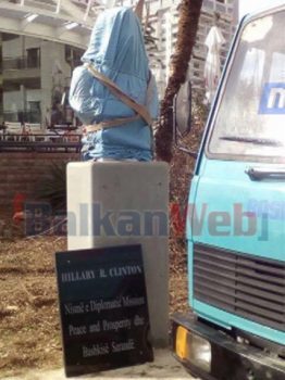 Socialistet heqin bustin e Hillary Clinton në Sarandë. Qytetarët: “Ngaqë fitoi Trump”.