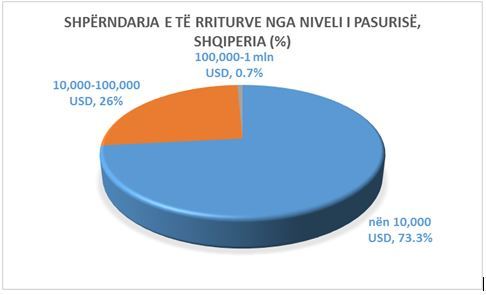 Pjesa më e madhe e shqiptarëve, 73.3% e tyre, janë relativisht të varfër dhe kanë një pasuri nën 10 mijë dollarë. 26% e tyre kanë një pasuri që luhatet nga 10 mijë deri në 100 mijë dollarë.