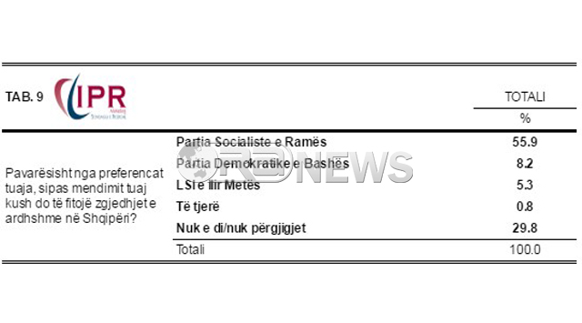 PYETJA TJETER- Pavaresisht nga preferencat tuaja, sipas mendimit tuaj kush do te fitoje zgjedhjet? Shikoni tabelen me poshte.