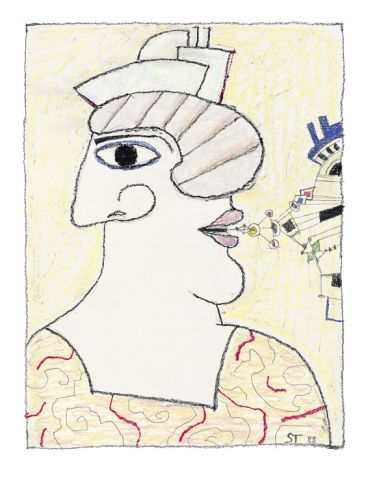 “Pikturat sillen mes vizatimeve dhe formave organike, vetëm ngjyrat evokojnë politikën. Veprën e tij Rama e ndërton në formën e një ditari,” thotë gazetari francez