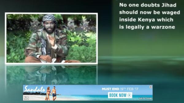 Në foto: Një reklamë e agjencisë turisitike Sandals shfaqet gjatë një video xhihadiste.
