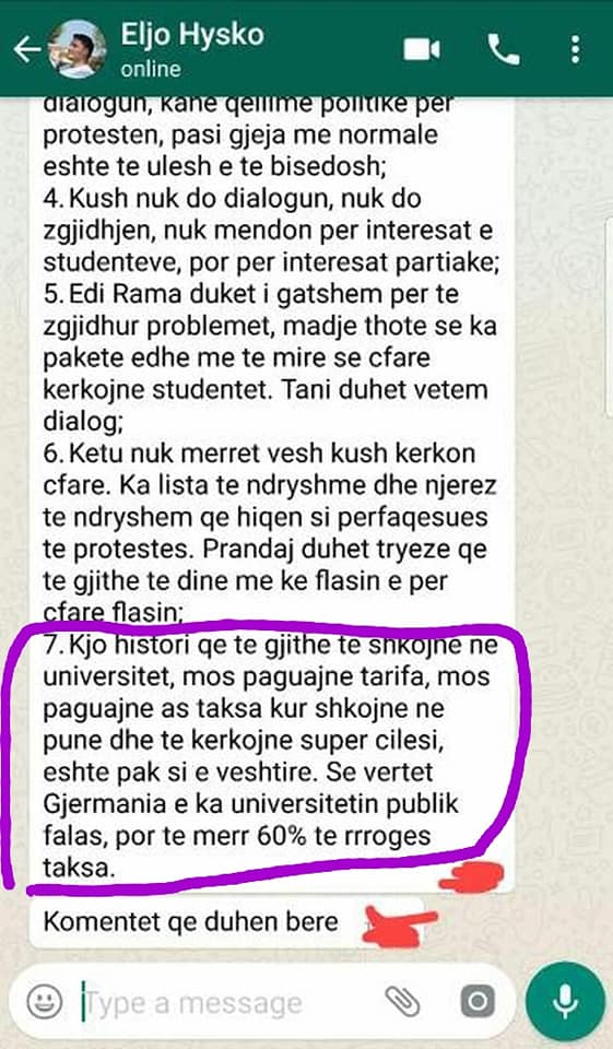 proteste spontane, ku ngrejne zerin per kthimin e universitetit ne bankomat dhe lope qe milet. Si cdo gje publike qe po i nenshtrohet privatizimit ne shwiperi dukw rritur kostot edhe arsimi i larte eshte kthyer ne burim fitimi per ujqrit privatw. Pas ligjit te qeverise rama per arsimin e larte te gjitha universitet rritin tarifat per te mbijetu ne treg dhe per kenaq orekset e pashallarve te arsimit dhe oligarkeve qe fusin duart dhe ne qindarkat e fundit te studenteve.