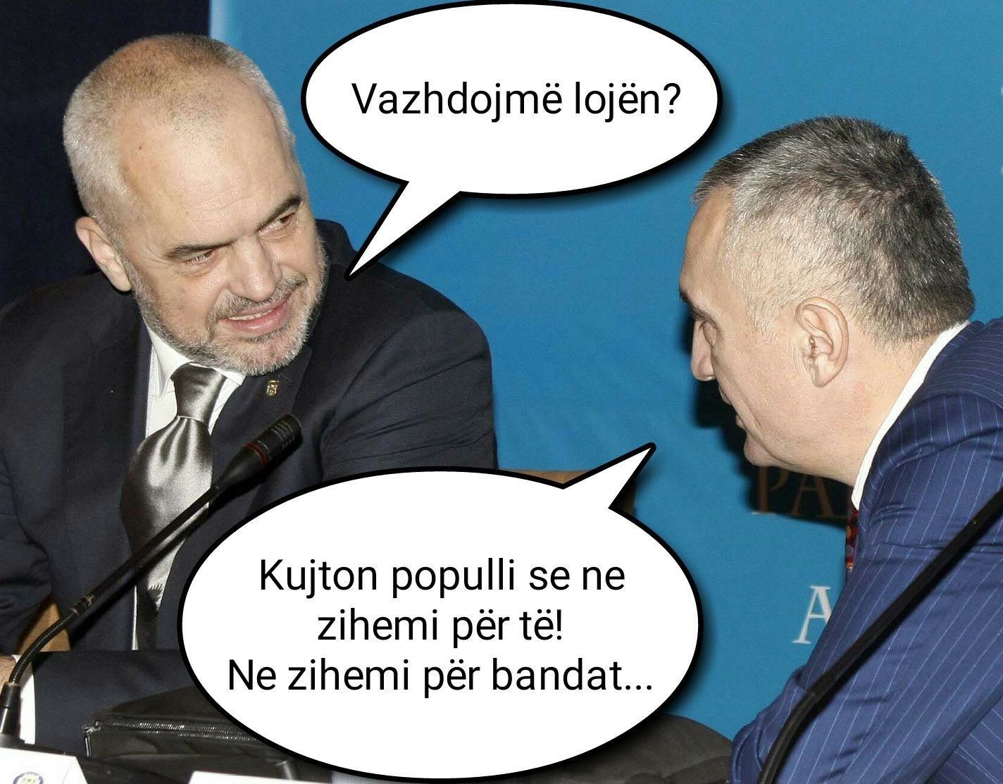 Kjo grindje pordhitikanesh (politikanesh desha te them) shqiptare te kujton proverbin e urte: i yti mishin ta ha, por kocken ta le, i huaji ta ha dhe kocken! Nje proverb i harruar nga keta grindes apasionante!